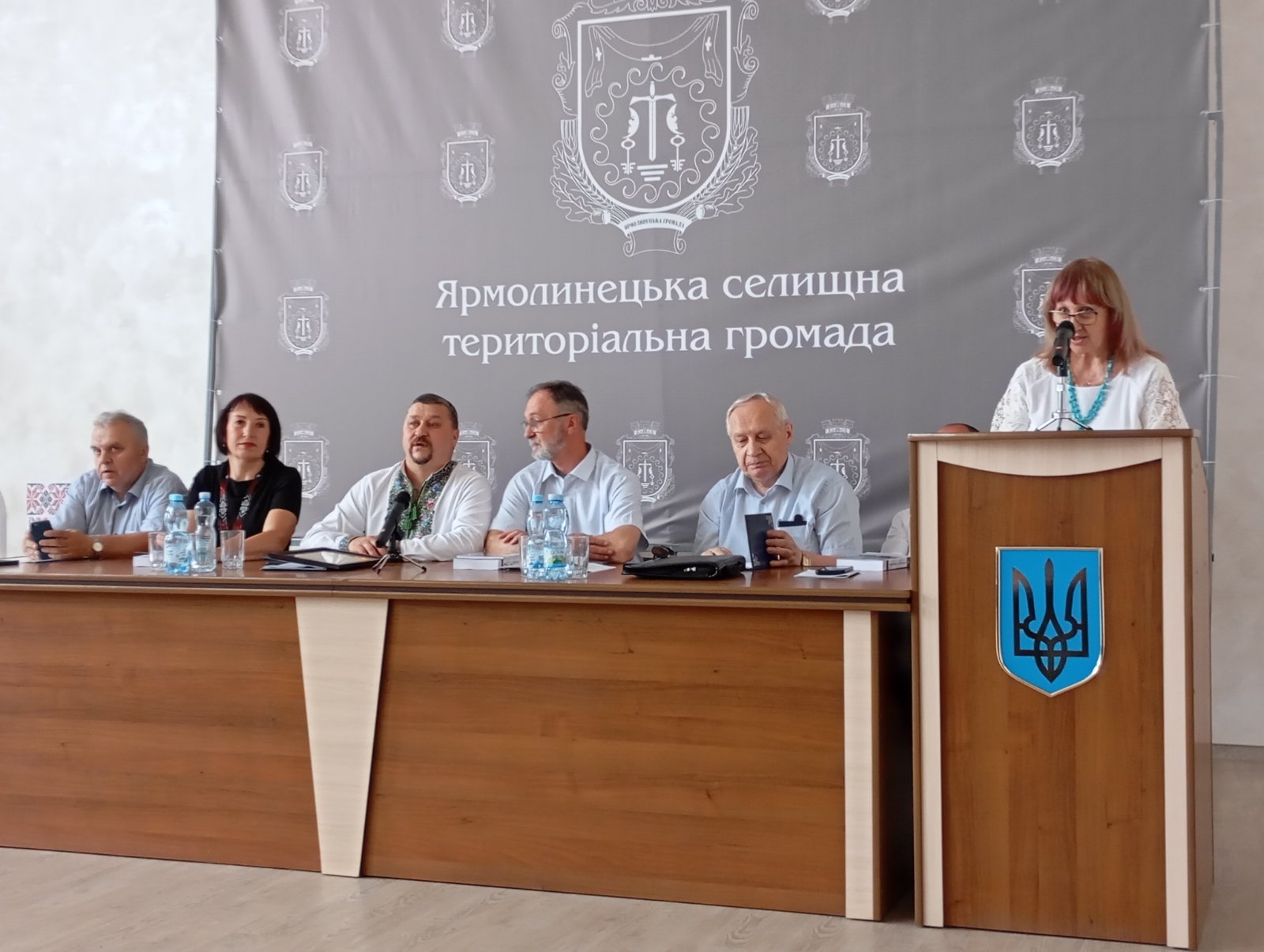 Алла Гуменюк, начальник відділу культури, туризму та релігії Ярмолинецької селищної ради, розповіла про висвітлення теми російсько-української війни на шпальтах ярмолинецької газети «Вперед» (2022-2023 рр.), а Ірина Драгомерецька, начальник відділу економічного розвитку та інвестицій апарату Ярмолинецької селищної ради, виступила із доповіддю «Ярмолинецька громада в умовах викликів сьогодення».
