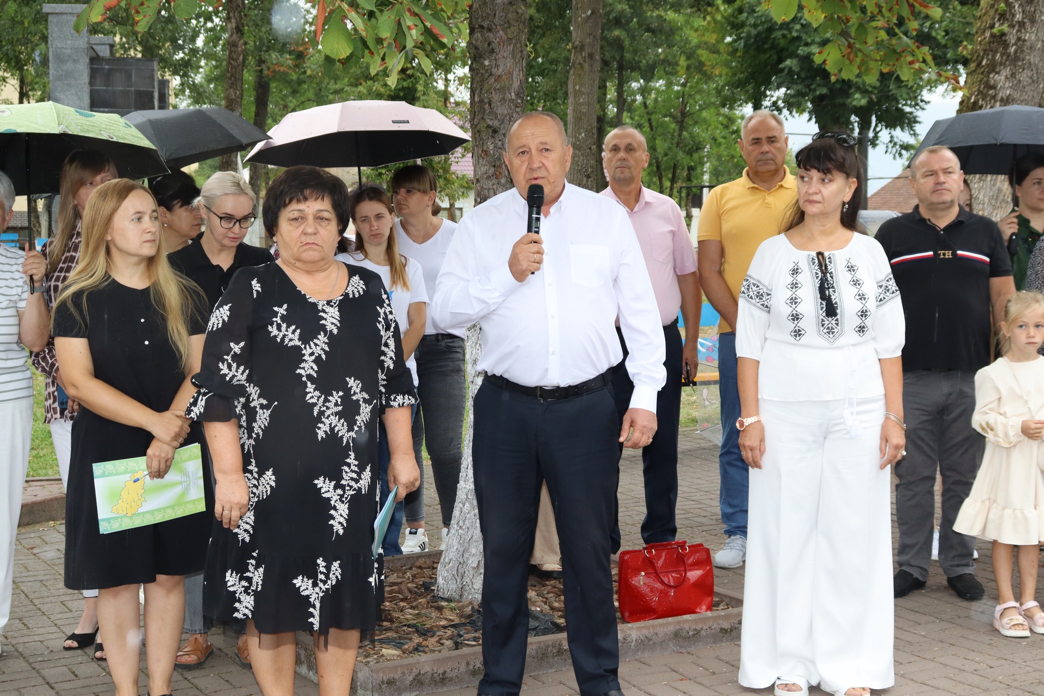 Почесну місію підняття національного стягу виконали вчитель Білківського ЗЗСО І-ІІІ ступенів №2 Валерій Кудло та директорка Луківської гімназії Ганна Лях.