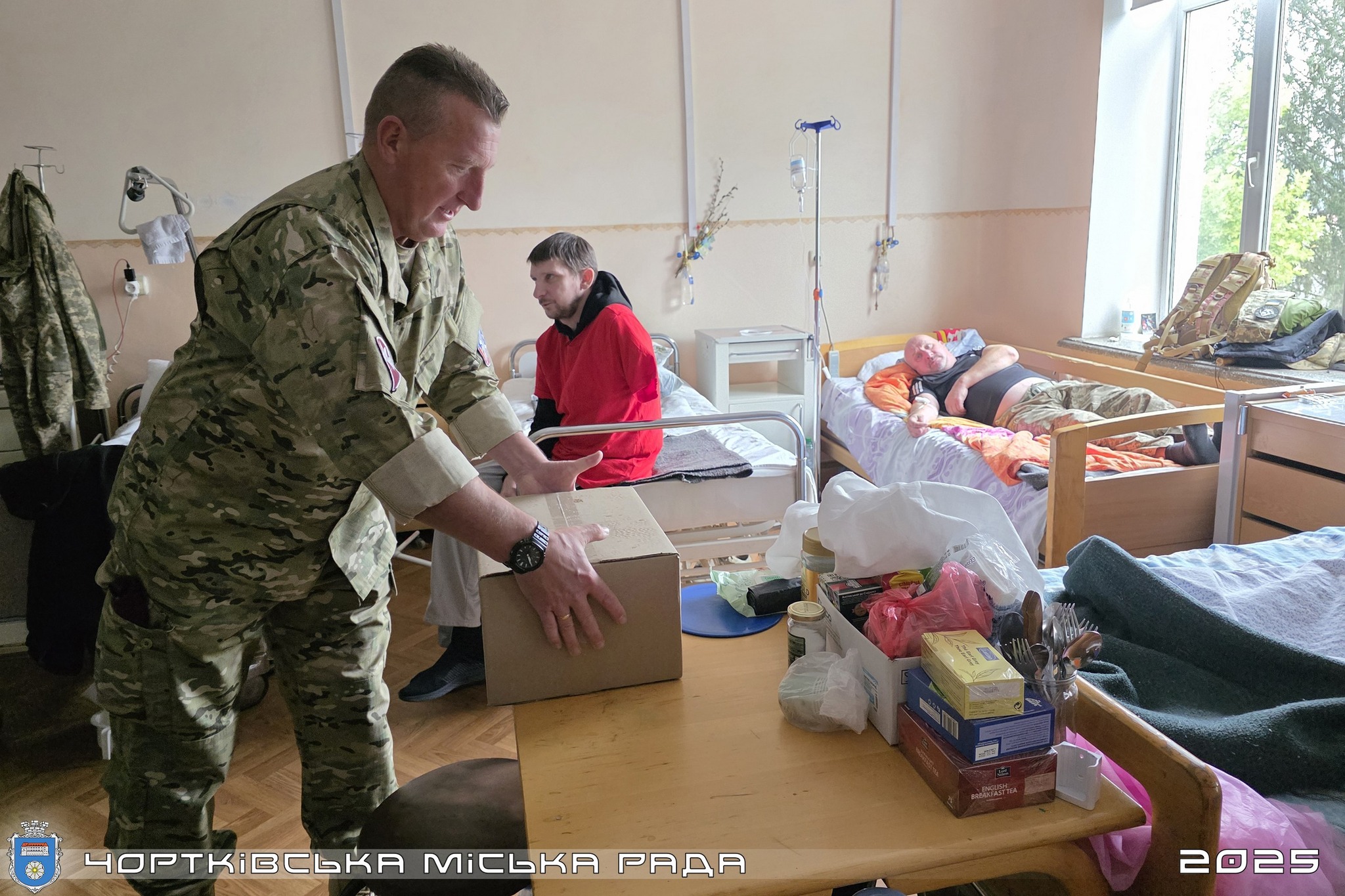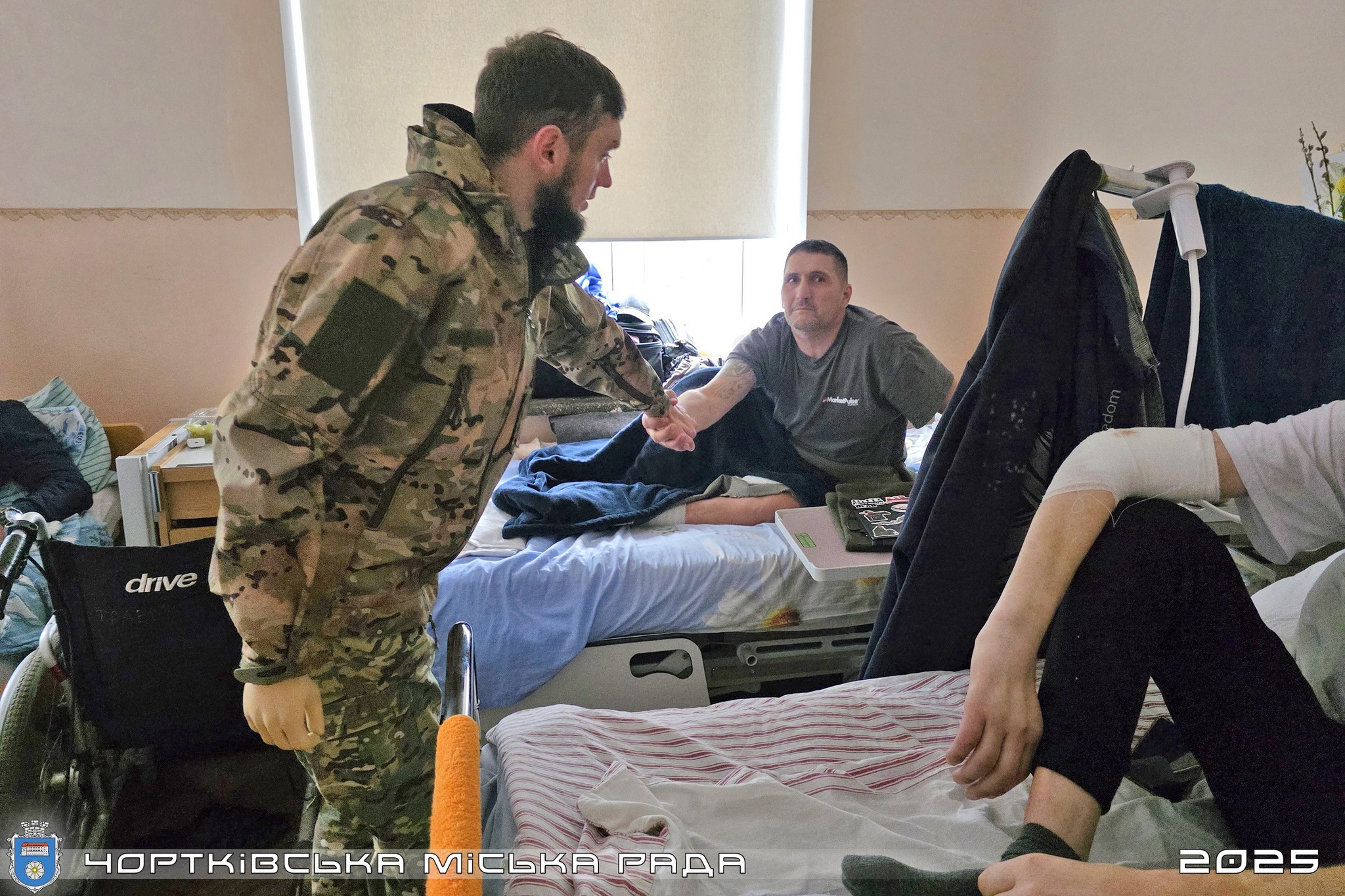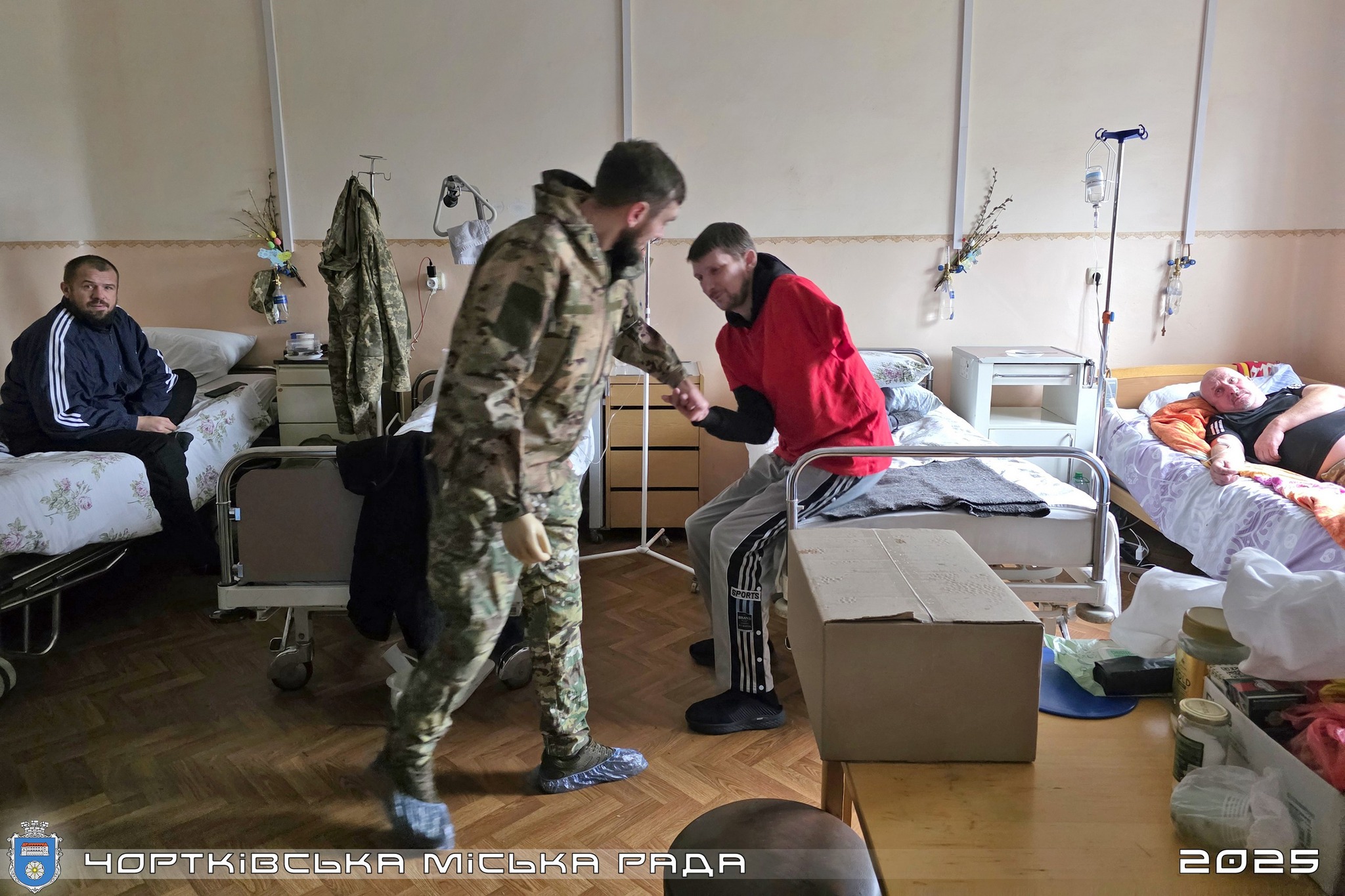 У заході взяли участь міський голова Володимир Шматько, капелан лікарні та керівник БФ «Покрова Чортків» о. Андрій Левкович, представники відділу ветеранської політики на чолі з ветераном війни Олегом Постоловським, директор лікарні Ростислав Шульський, а також колектив «Стоматології Блажківих». Спільними зусиллями вони привітали захисників, привезши їм солодощі та подарунки. Особлива подяка «Стоматології Блажківих» за їхню незмінну підтримку воїнів!