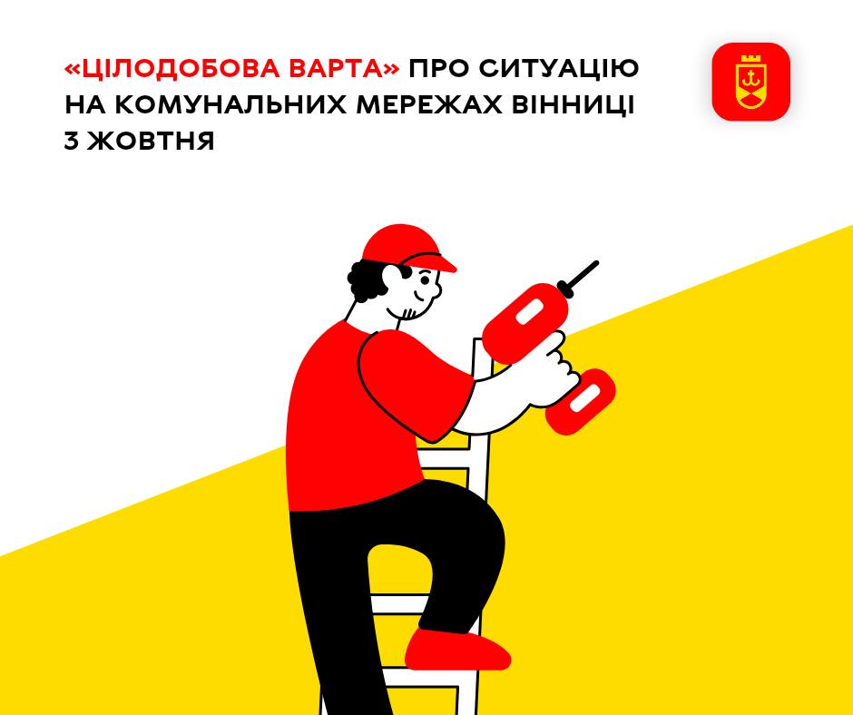 Відділ оперативного реагування «Цілодобова варта» Вінницької міської ради інформує про поточну ситуацію з комунальними мережами міста станом на 3 жовтня.