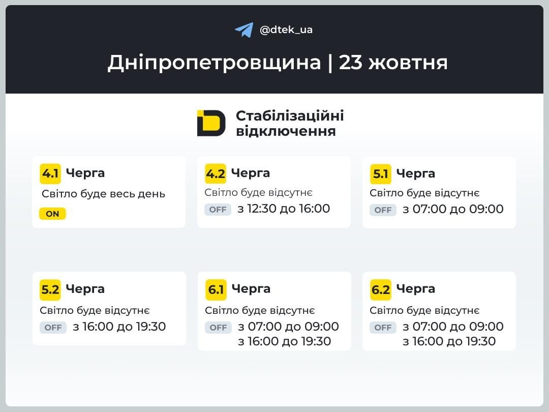 У ДТЕК повідомляють, що графіки погодинних відключень на Дніпропетровщині будуть діяти для всіх шести черг. Це сприятиме стабілізації роботи енергосистеми регіону.