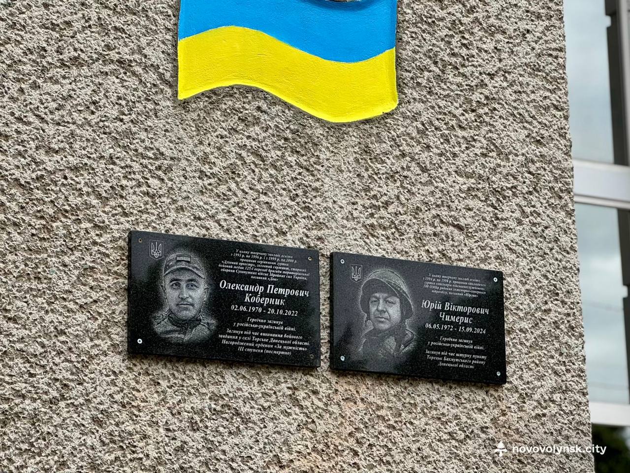 На фасаді Нововолинського Центру дитячої та юнацької творчості відкрили меморіальні дошки на честь Героїв — Олександра Коберника та Юрія Чимериса, які працювали у цьому закладі.