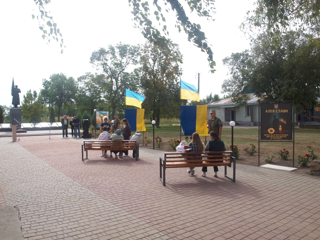 «Це Алея пам’яті тих, кого ми знали, з ким сиділи за однією шкільною партою, кого проводжали на строкову службу, з ким працювали пліч-о-пліч і хто у воєнну добу став на захист Батьківщини, поклав життя за її незалежність, – наголосила ведуча. – Нас зібрала тут не просто подія, а душевна потреба вшанувати подвиг наших захисників».