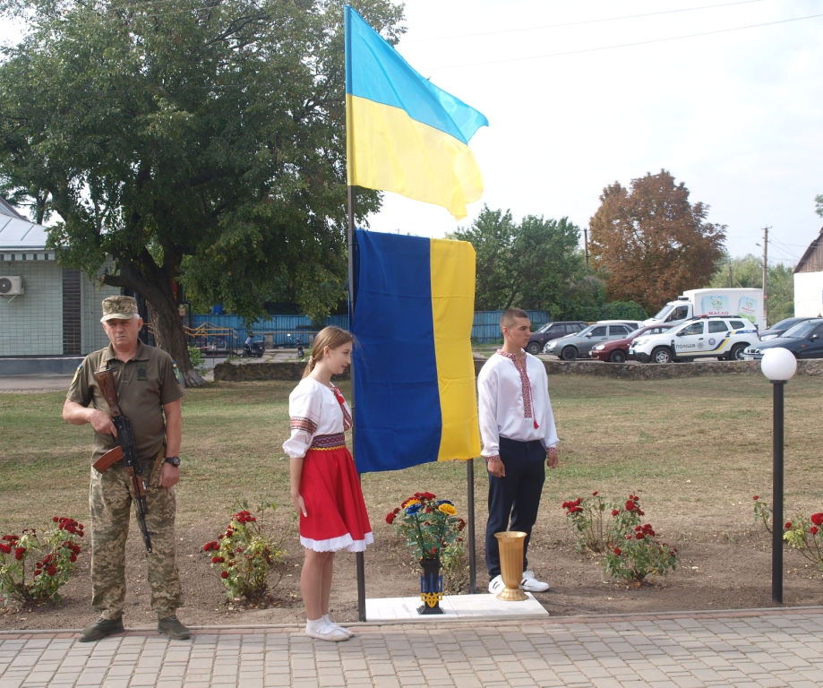 Над кожним банером майорить державний стяг, а почесну варту несуть військові та учні-старшокласники місцевого ліцею. Урочисте звучання Державного Гімну України додало події особливої величі.