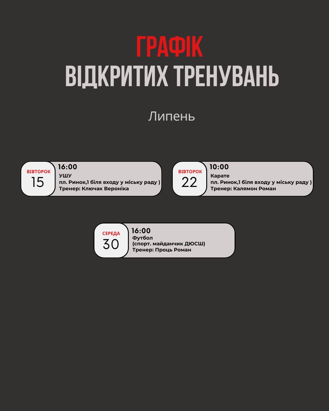 Запрошуємо молодь громади долучатися! Відкриті тренування — це простір для розвитку, нових викликів та змістовного дозвілля.