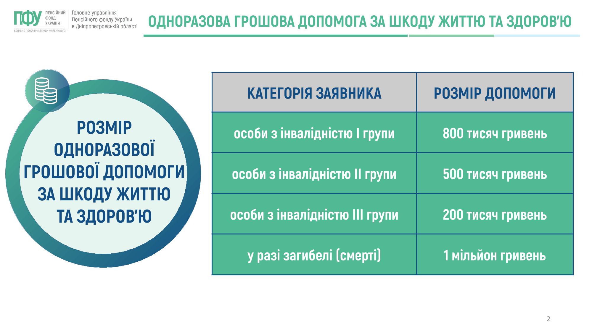 - Особам з інвалідністю II групи – 500 тисяч гривень.