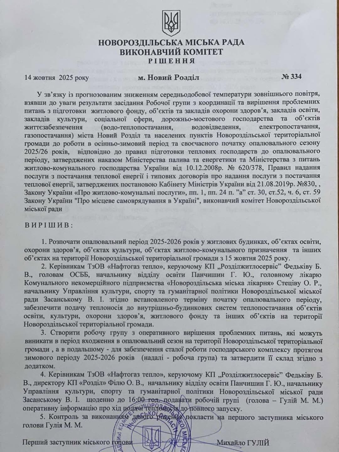 Новорозділ, Україна – Згідно з офіційним рішенням виконавчого комітету Новороздільської міської ради, яке було прийнято 14 жовтня 2025 року, опалювальний сезон 2025–2026 років на території Новороздільської територіальної громади офіційно розпочинається з 15 жовтня 2025 року. Це важливе рішення стосується всіх категорій споживачів, забезпечуючи своєчасне подання тепла до осель громадян.