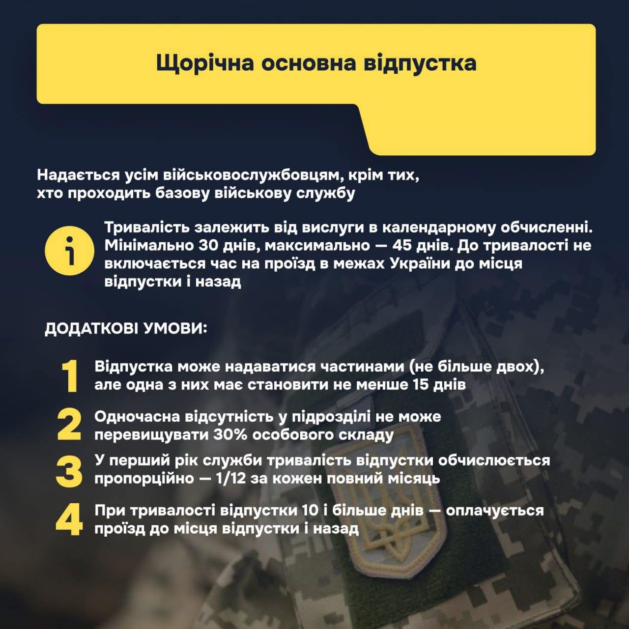 ✔️ Відпустка для військовослужбовців базової військової служби.