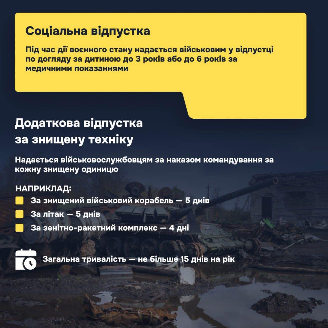 ▪️ Додаткова відпустка за знищену техніку