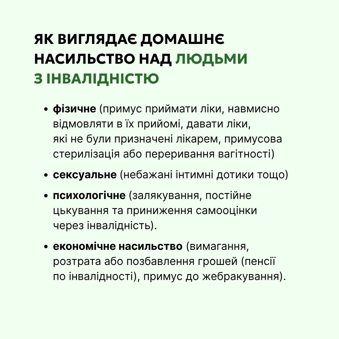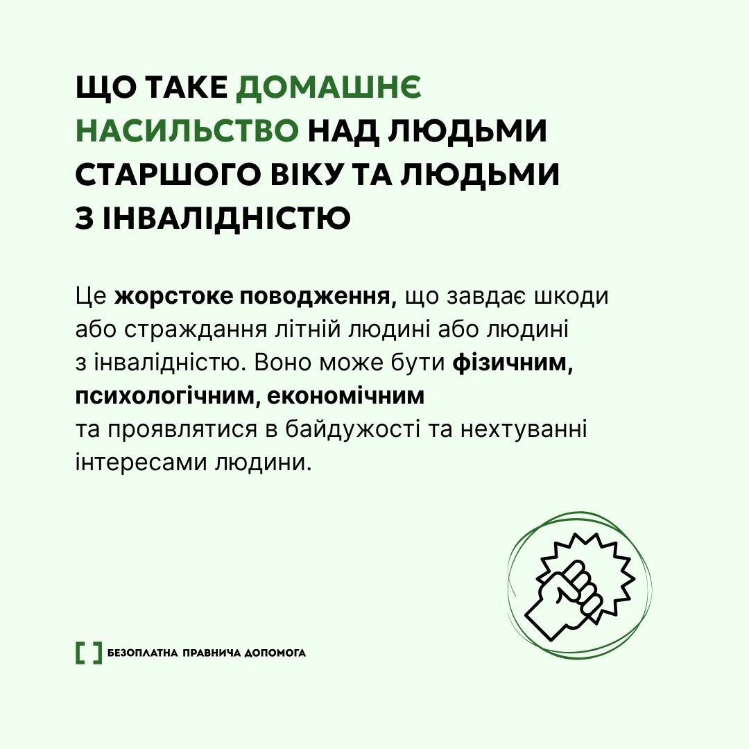 Будь-хто може стати жертвою домашнього насильства, зокрема люди похилого віку та люди з інвалідністю. Важливо знати, як розпізнати ознаки домашнього насильства та куди звертатися за допомогою.