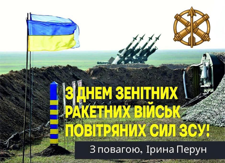 Від усього серця вітаємо наших непереможних захисників з нагоди їхнього професійного свята – Дня зенітно-ракетних військ України! Ваша служба є наріжним каменем безпеки нашої держави, адже саме ви тримаєте наше українське небо, захищаючи мирні міста та життя мільйонів українців від повітряних загроз. Завдяки вашій невтомній праці та неперевершеній майстерності у сфері протиповітряної оборони, тисячі московських ракет, ворожих безпілотників та інших засобів повітряного нападу було знищено ще до того, як вони досягли своїх цілей. Ви не дозволяєте ворожій авіації панувати у нашому повітряному просторі, забезпечуючи життєво важливу перевагу на фронті та спокій у тилу.Мужність та професіоналізм українських воїнів на передовій є незламними, бо вони знають, що їхні позиції та життя прикривають наші зенітно-ракетні війська. Ця впевненість дає їм змогу зосередитися на знищенні ворога на землі, знаючи, що небо над ними – під надійним захистом. Кожного дня, кожна українська родина, від малечі до найстарших, підносить молитви до Бога за ваше здоров’я, незламну силу та невичерпну витримку. З вірою у серці люди щоденно повторюють: «Віримо у ЗСУ», і часто з особливою теплотою додають: «І віримо у наше ППО». Це не просто слова, це щира подяка та глибока повага до тих, хто стоїть на варті нашої свободи.Безмежна вдячність кожному бійцю зенітно-ракетних військ України. Ваша самовіддана праця – це приклад справжнього патріотизму та незламності духу. Завдяки вашій героїчній службі, ми маємо змогу жити, працювати та наближати нашу спільну Перемогу. Ваші рішучі дії та високий професіоналізм є запорукою того, що українське небо залишається під нашим контролем, а ворожі літаки та ракети зустрічають гідний опір. Кожен ваш успішно збитий об’єкт – це збережене життя, це врятована інфраструктура, це ще один крок до повного звільнення наших територій.Ми щиро дякуємо вам за кожну хвилину вашої героїчної та самовідданої служби. Ваша готовність ризикувати власним життям заради безпеки країни викликає захоплення та повагу. У цей знаменний день ми також схиляємо голови у вічній пам’яті перед полеглими Героями, які віддали найцінніше – своє життя – заради нашого вільного майбутнього. Їхній подвиг ніколи не буде забутий і назавжди залишиться у серцях українського народу. Їхня самопожертва є вічним джерелом натхнення для наступних поколінь.Разом, об’єднані однією метою, ми обов’язково переможемо. Слава Україні! Нехай сила та мужність завжди супроводжують вас у цій нелегкій, але надзвичайно важливій справі. Ми пишаємося вами і віримо у вашу непереможність. З повагою, селищна голова Ірина Перун.