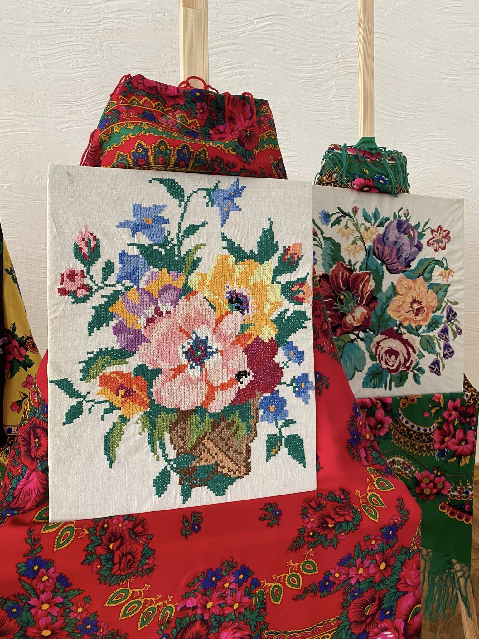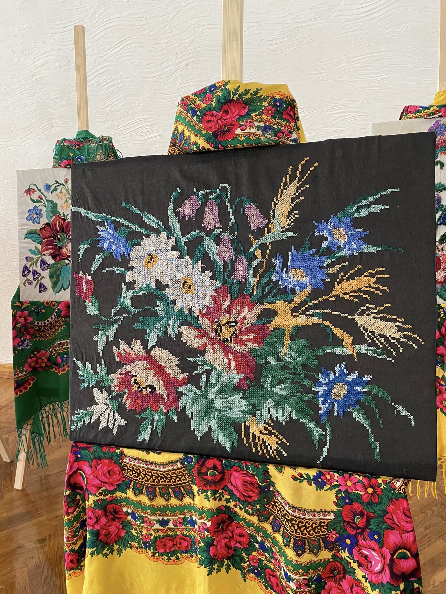 Квіткові орнаменти переносилися на полотно, і кожна майстриня додавала щось унікальне від себе. З любов’ю обиралися кольори ниток, які природно поєднувалися в роботах. Так з’явилася брокарівська вишивка хрестиком, яка гармонійно співіснує з автентичною традиційною вишивкою гладдю. Висловлюємо щиру подяку Світлані Атаденко за її ініціативу, збір та збереження цих чудових вишитих картин, які стали основою виставки. Її праця дозволила віднайти та показати справжні скарби народного мистецтва, що довгий час зберігалися в оселях мешканців нашого краю.