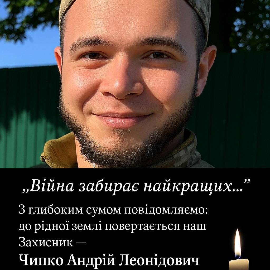 Війна забирає найкращих синів України…🕯🥀 З глибоким сумом повідомляємо, що до рідної землі повертається наш Герой-Захисник — Чипко Андрій Леонідович, 14.12.1997 р.н., уродженець села Рибальське. Рік тому, 13 травня 2024 року, Андрій вважався зниклим безвісти. Після важкого року в невідомості стало відомо про його героїчну загибель, захищаючи суверенітет України. Солдат Чипко Андрій загинув 13.05.2024 під час виконання бойового завдання поблизу населеного пункту Соловйове, Донецької області. Ми готуємось гідно зустріти нашого Героя на рідній землі, як воїна, що віддав своє життя за свободу Батьківщини.