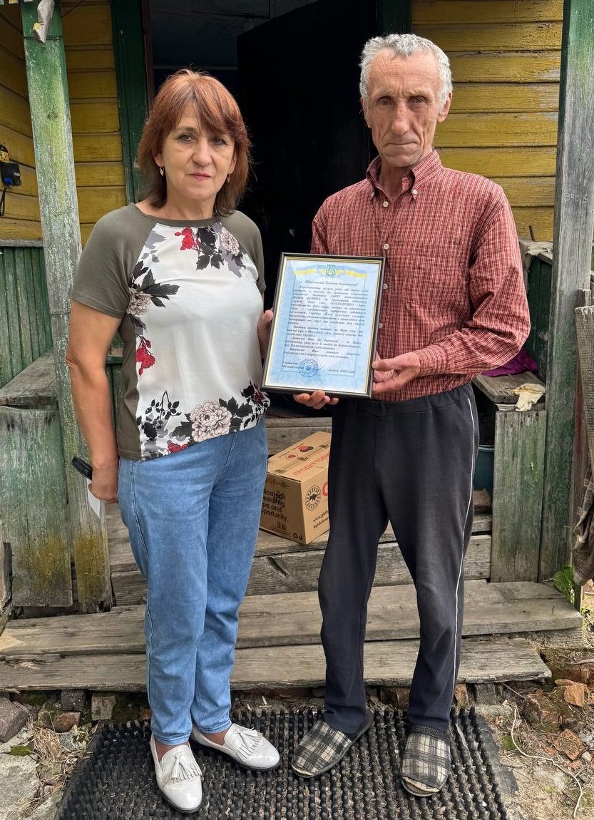 Світлана Більська, секретар міської ради, від імені міського голови Андрія Богдана та всієї громади передала Леоніду Івановичу Подяку. Також висловила слова щирої вдячності за виховання патріота – відважного і вірного воїна, який з честю захищає Україну. Громада дякує батькові за виховання сина-захисника.
