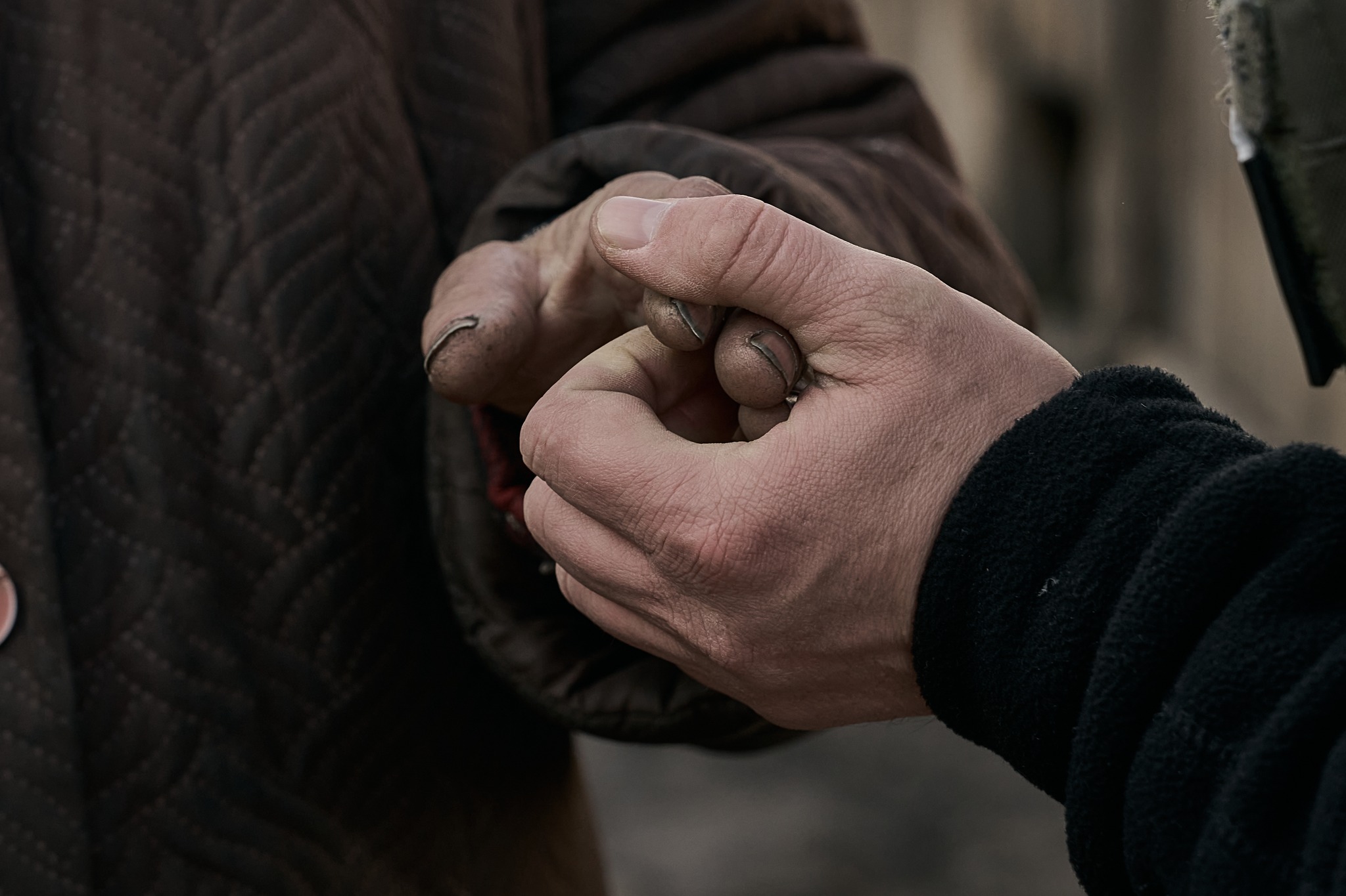 Капелан, який щодня ризикує власним життям, займаючись евакуацією цивільних із зони бойових дій, тримає за руку жінку старшого віку, вмовляючи її поїхати з Покровська. У цих кількох секундах – не просто турбота, а глибоке співчуття та бажання врятувати, що виражається найпростішим, але таким важливим дотиком. Це приклад того, як підтримка у важкі часи стає справжнім ресурсом.