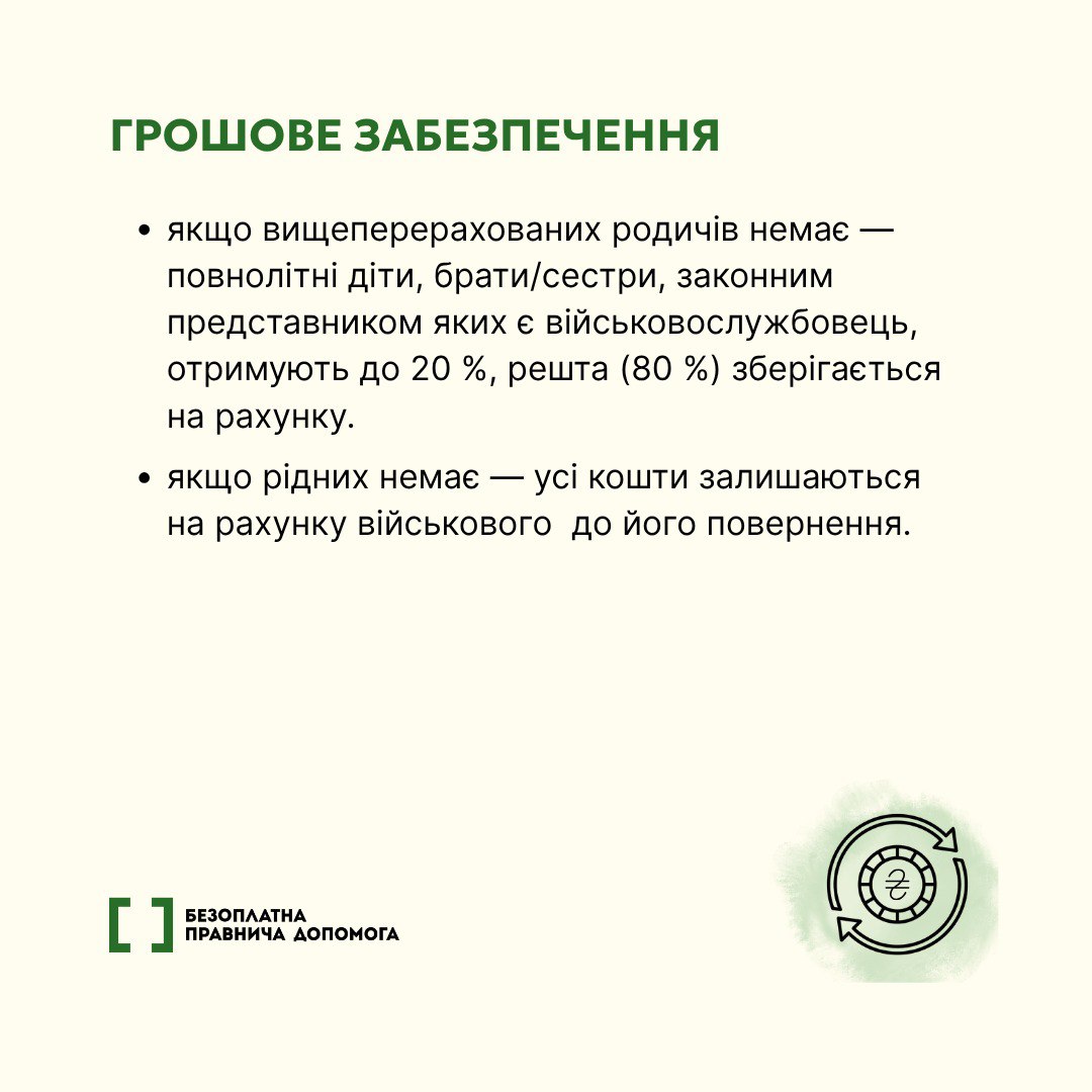 * **Допомога родичам:** Частина виплат може бути перерахована на рахунки родичів, які очікують на повернення свого близького. Це допомагає підтримати сім’ю фінансово.