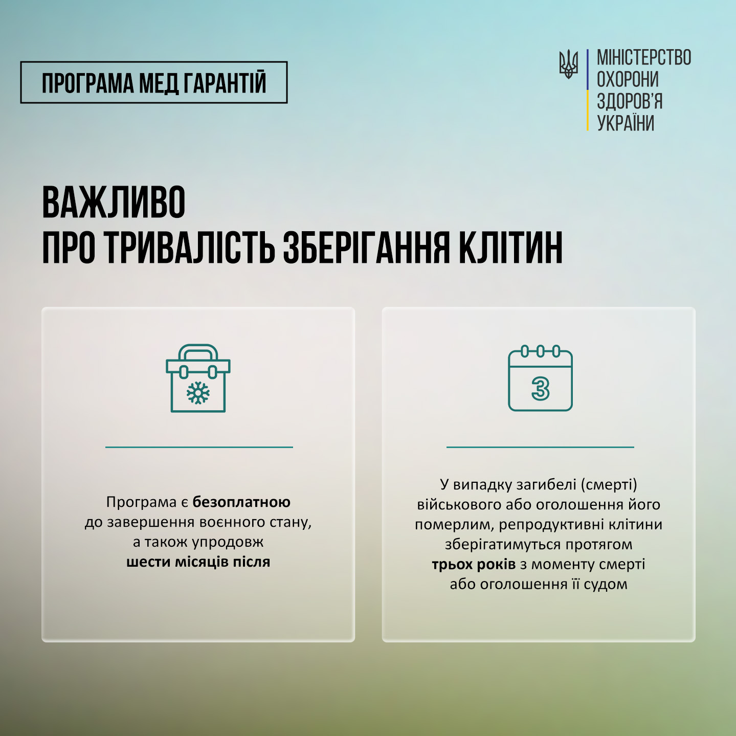 Детальніше про те, як працює програма із кріоконсервації, буде розказано найближчим часом. Слідкуйте за оновленнями, щоб дізнатися більше про умови участі в програмі, необхідні документи та контакти для отримання додаткової інформації. Безоплатна кріоконсервація – це реальна можливість для військових планувати своє майбутнє та створити сім’ю після перемоги.