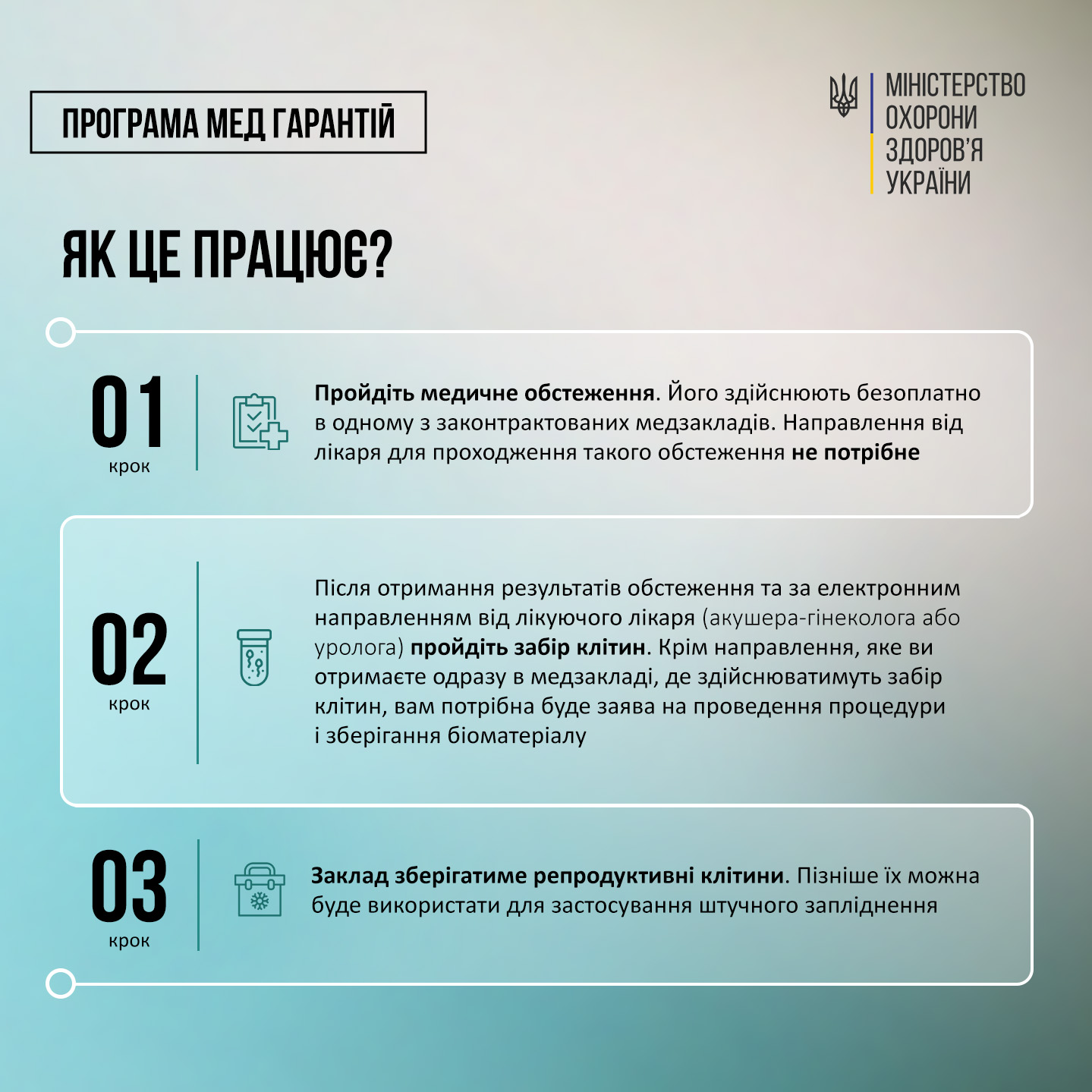 Держава Україна продовжує піклуватися про своїх захисників і захисниць, надаючи їм можливість безоплатно зберегти репродуктивні клітини. Ця важлива державна програма спрямована на захист репродуктивних прав військовослужбовців (як жінок, так і чоловіків), забезпечуючи їм шанс стати батьками в майбутньому, незалежно від ризиків, пов’язаних з війною.
