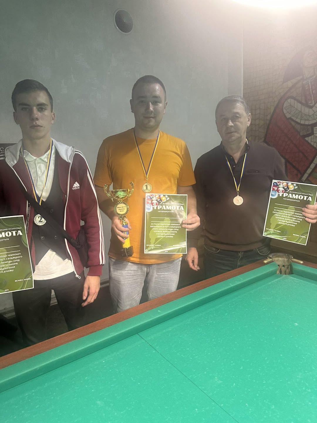 Ми щиро вітаємо переможців Відкритого чемпіонату Хмельницької області з більярдного спорту «Вільна піраміда»! Ваші досягнення є чудовим прикладом наполегливості та майстерності. Дякуємо всім учасникам за видовищну гру, неймовірні емоції та за те, що зробили цей турнір справжнім спортивним святом для міста Дунаївці та його гостей. Більярдний спорт в Україні продовжує розвиватися, і такі заходи є важливим кроком у популяризації цієї інтелектуальної та захоплюючої гри. 🎱