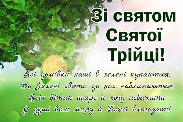 🌿Свята Трійця – це символ єдності та згуртованості. У цей святковий день бажаю кожному українцю відчути підтримку ближнього, знайти сили у вірі та надії. Нехай це свято принесе зцілення тим, хто страждає, і надію тим, хто її потребує. Нехай Свята Трійця оберігає нашу Україну та дарує нам перемогу.