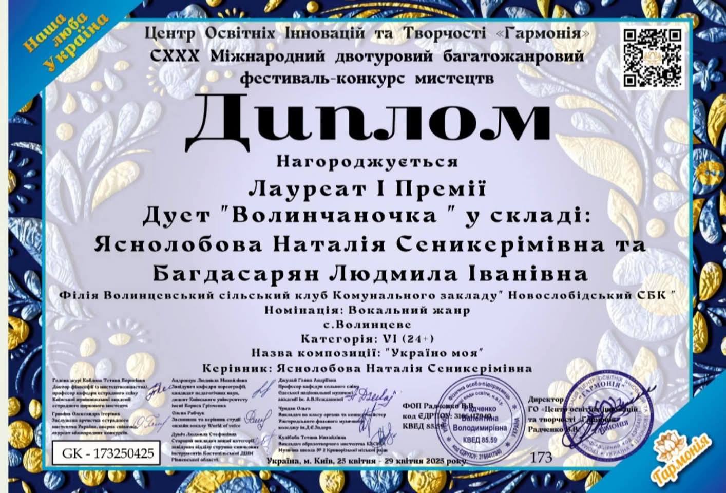 Новослобідська громада пишається своїми талантами! Аматори нашої громади здобули перемогу на II Міжнародному фестиваль-конкурсі 🇺🇦 “Наша люба Україна” 🇺🇦.