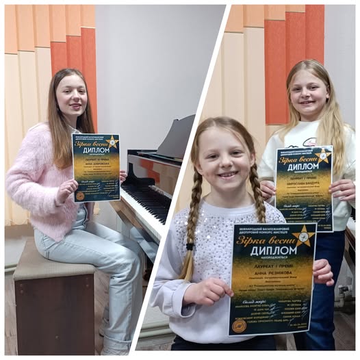 Щиро вітаємо Мирославу Бандуру, Анну Рєзнікову, Анну Дубровську та їхню викладачку Ларису Стаднік з перемогою! Бажаємо нових творчих досягнень, натхнення та невичерпної енергії на шляху до пізнання прекрасного світу музики. Нехай кожен виступ приносить радість та задоволення, а талант розквітає з кожним днем!