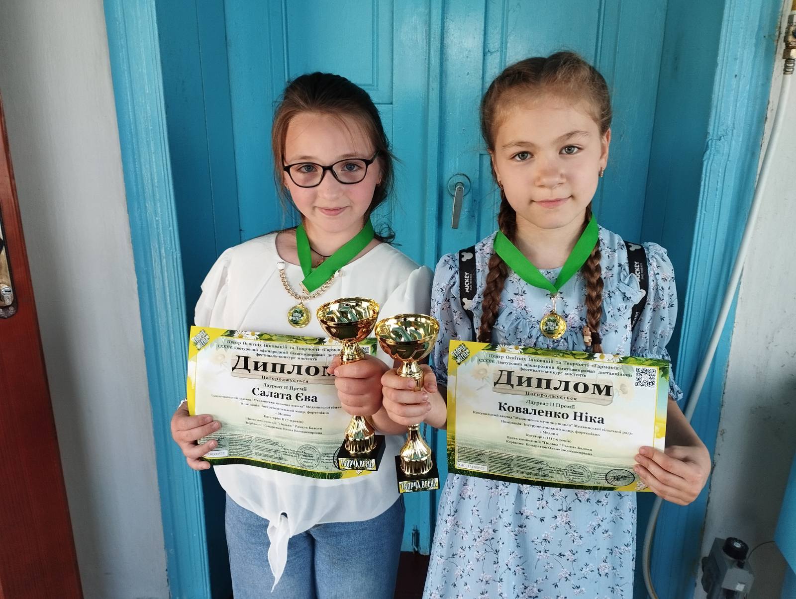 У світі, де таланти знаходять свій шлях завдяки наполегливості та підтримці, українські діти продовжують вражати своїми досягненнями. Приємна новина надійшла з Міжнародного багатожанрового двотурового дистанційного фестивалю-конкурсу мистецтв “Творча весна”, де учениці Медвинської музичної школи, Коваленко Ніка та Салата Єва, продемонстрували надзвичайний рівень майстерності. Їхній талановитий виступ був відзначений високим ІІ місцем, що стало значним успіхом для молодих піаністок, їхнього навчального закладу та всієї громади.Цей престижний конкурс, що об’єднує юні таланти з різних куточків світу у різноманітних жанрах мистецтва, надає унікальну можливість для демонстрації здібностей та отримання цінного досвіду. Дистанційний формат дозволив учасникам змагатися, перебуваючи у своїх рідних містах, що робить перемогу ще більш значущою, адже це свідчить про високу адаптивність та стійкість української музичної освіти. Коваленко Ніка та Салата Єва гідно представили Медвинську музичну школу, виконуючи складний та витончений ансамбль у 4 руки — знамениту “Польку” композиторки Р. Балоян. Їхнє синхронне та емоційне виконання зачарувало журі, підкресливши глибину розуміння музичного твору та виняткову техніку.