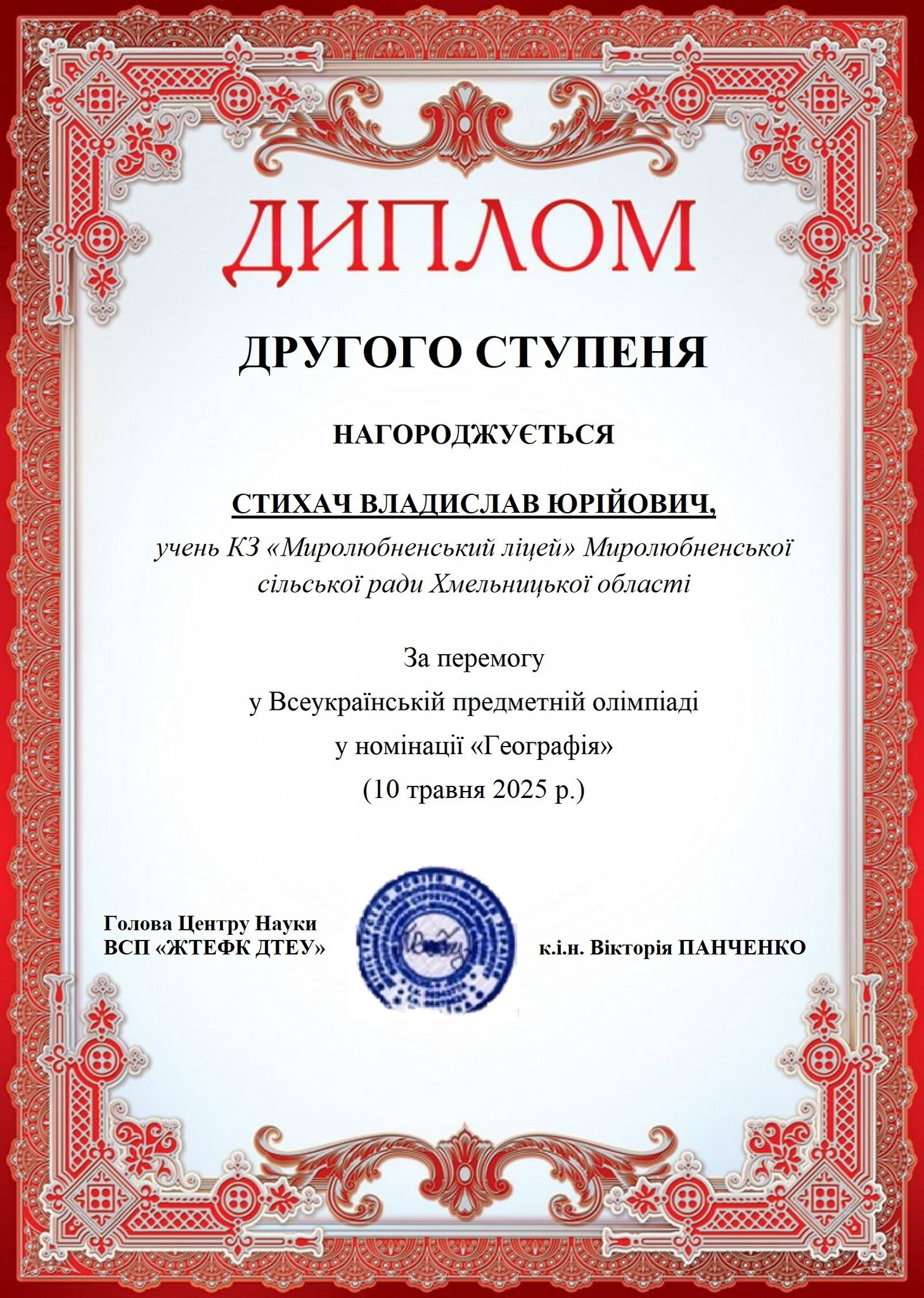 - Стихача Владислава, учня 10 класу, з ДИПЛОМОМ другого ступеня!