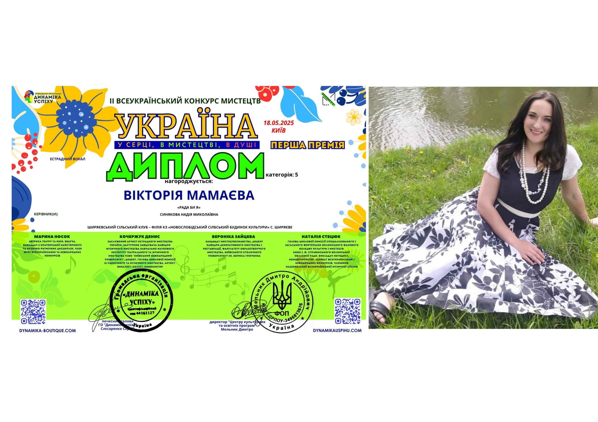 - 🥇 І ПРЕМІЯ – Вікторія Мамаєва, аматор філії Ширяєвський сільський клуб, керівник Синякова Н.М;