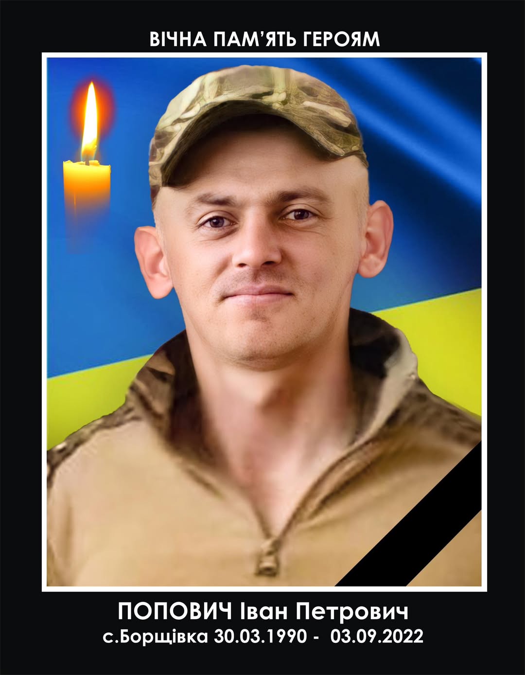 Сьогодні, 3 вересня, минає три роки з дня трагічної загибелі нашого земляка, молодого сержанта, командира міномета ПОПОВИЧА Івана Петровича, який віддав своє життя, захищаючи Україну. Цей хоробрий воїн загинув 3 вересня 2022 року, виконуючи бойове завдання на Донеччині. 8 вересня 2022 року, полеглий Герой був доставлений «на щиті» до рідного села, де його проводжали в останню путь з усіма належними військовими почестями.