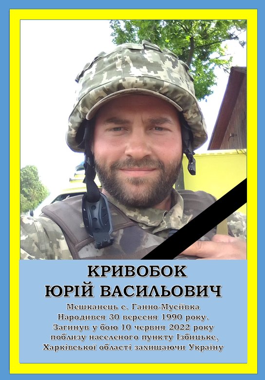 Сьогодні, 10 червня, ми вшановуємо пам’ять нашого земляка, воїна, патріота – Кривобока Юрія Васильовича. Юрій Кривобок, назавжди в наших серцях.