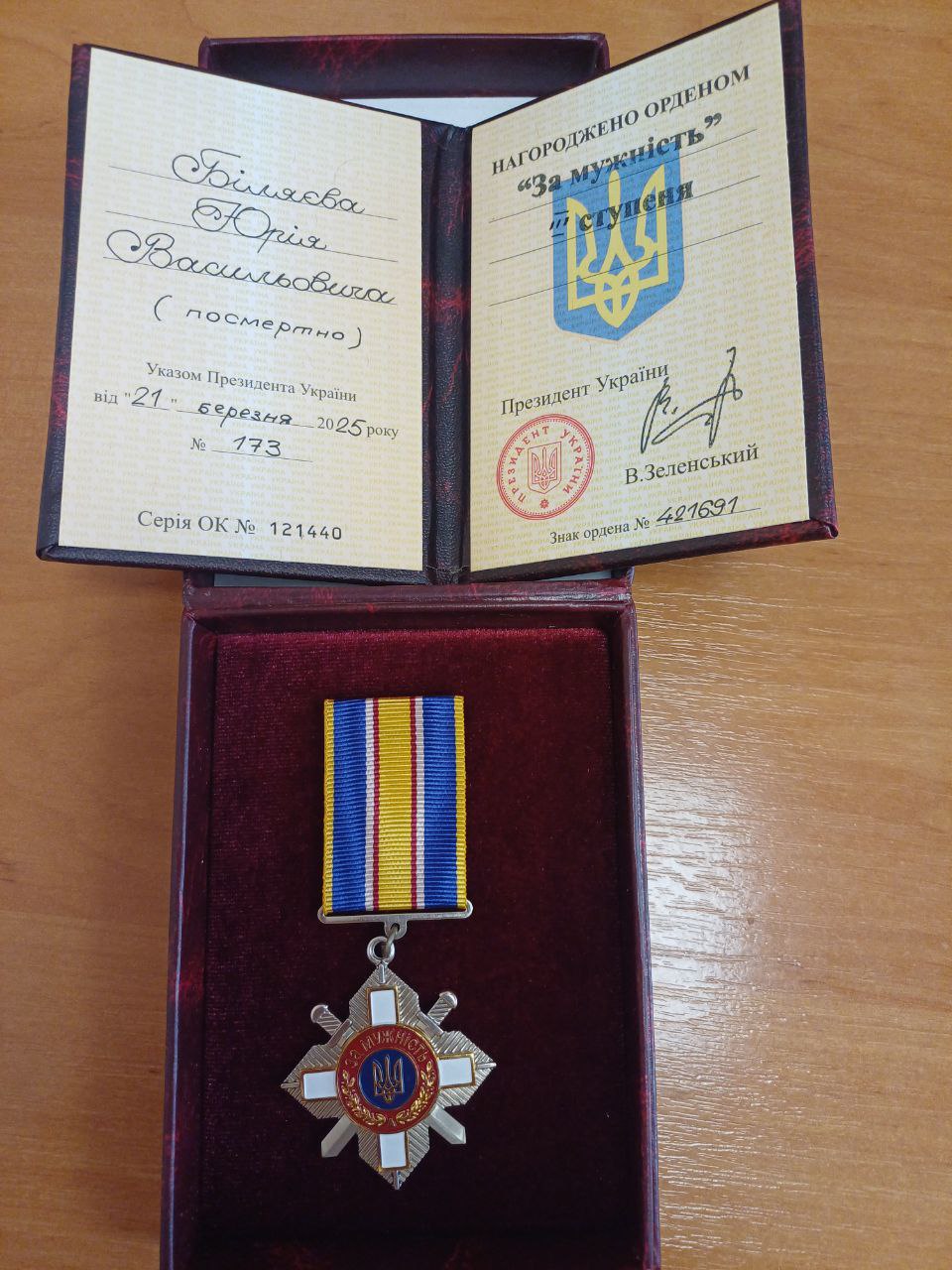 Сьогодні – день, сповнений сліз, болю і гордості водночас. День, коли нагороду отримує не той, хто її заслужив, а той, хто залишився – з втратою, з порожнечею, але з гідністю в серці. У цей день родині загиблого воїна Біляєва Юрія Васильовича було вручено орден «За мужність» ІІІ ступеня (посмертно). Юрій віддав найцінніше – своє життя – за те, щоб ми могли жити вільно. Щоб небо над нашими дітьми було мирним. Його подвиг – не лише про героїзм, а про любов. До рідної землі. До народу. До майбутнього. Пам’ять про Героя Юрія житиме вічно.