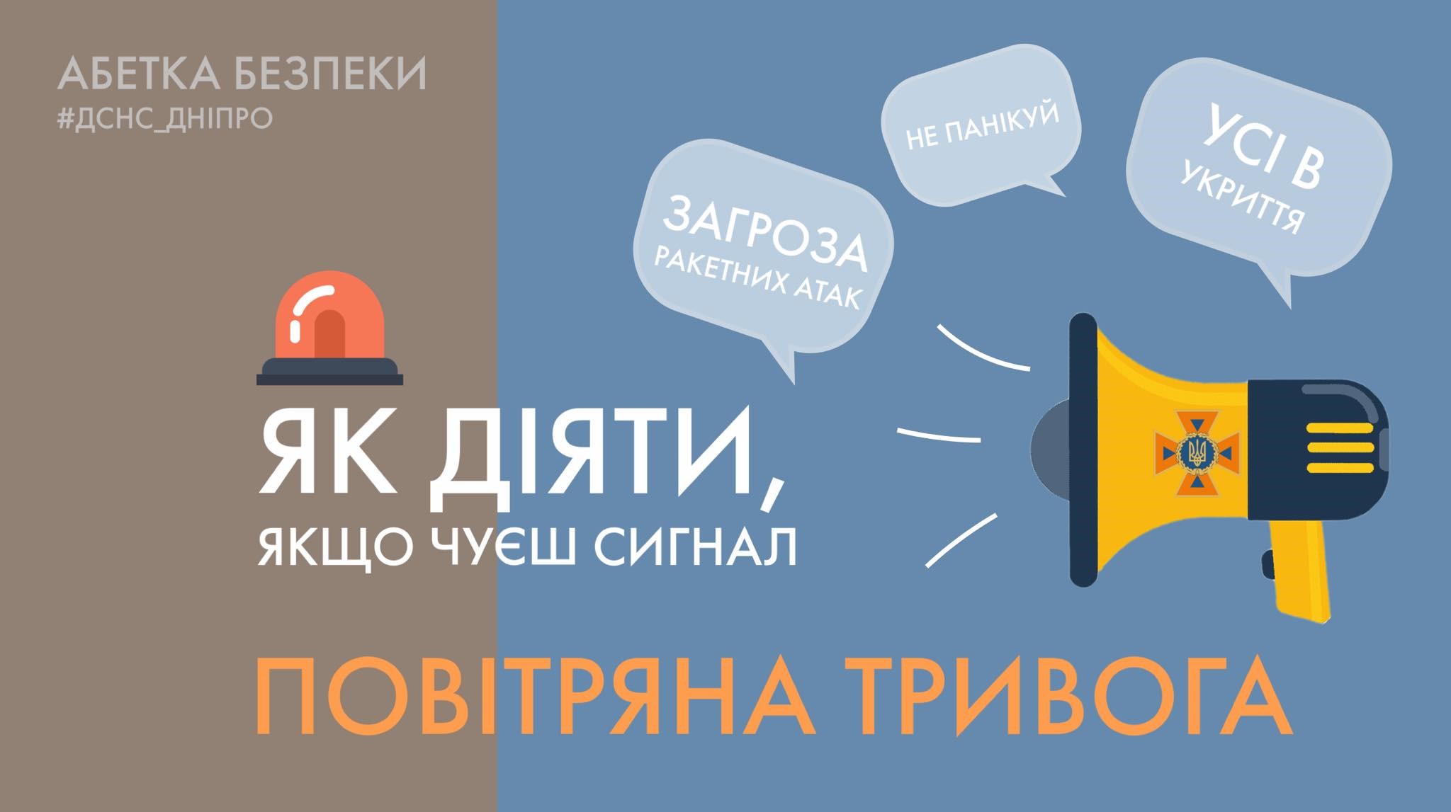 У хвилини повітряної тривоги зберігайте спокій, дійте швидко та організовано. Після сигналу про відбій тривоги можна покинути укриття.