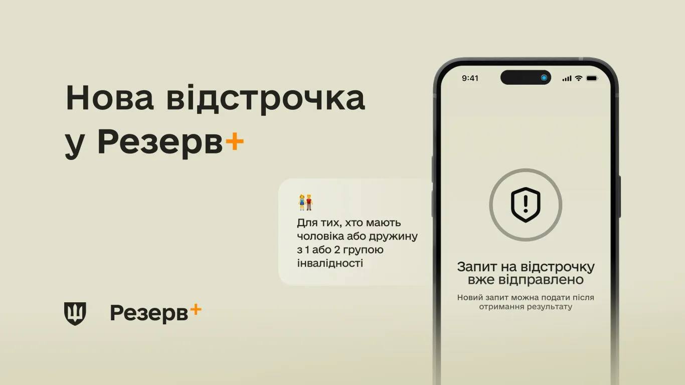 📱 В оновленні застосунку Резерв+ додалася нова відстрочка – для подружжя, в якому чоловік або дружина мають інвалідність І або II групи.