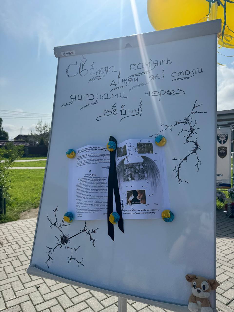 У мальовничому парку селища Печеніжин з’явилась особлива інсталяція, покликана вшанувати пам’ять про дітей, чиє життя трагічно обірвала війна. Ця зворушлива композиція стала місцем, де кожен може зупинитися, віддати шану безневинним жертвам та піднести молитву за їхні душі. Інсталяція в Печеніжині – це нагадування про крихкість дитинства і високу ціну миру, за який ми боремось.