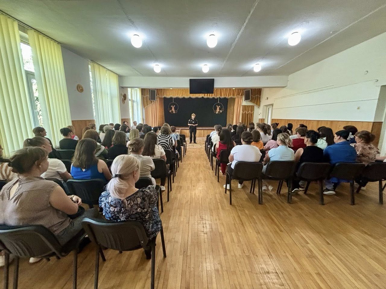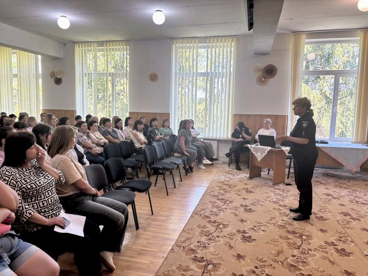 Директорка школи, Оксана Юріївна, також виступила з доповіддю, представивши матеріали щодо профілактики тероризму та інформаційного впливу. Вона підкреслила важливість відкритого діалогу з дітьми, заохочуючи батьків бути в курсі кола спілкування своїх дітей та вміти вчасно реагувати на тривожні сигнали. Це допоможе батькам вберегти дітей від негативного впливу та потенційних загроз.