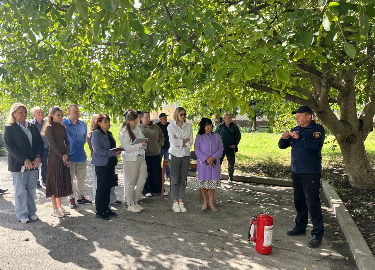 Практична частина тренування включала протипожежне відпрацювання. Учасники відпрацювали процедури оповіщення про загоряння, безпечну евакуацію людей та цінних речей, а також навички використання первинних засобів пожежогасіння. Крім того, було відпрацьовано надання першої допомоги та взаємодія з аварійно-рятувальними підрозділами, що є ключовим елементом злагодженої роботи під час будь-якої надзвичайної ситуації. Ефективна взаємодія та швидкість реакції можуть врятувати життя.