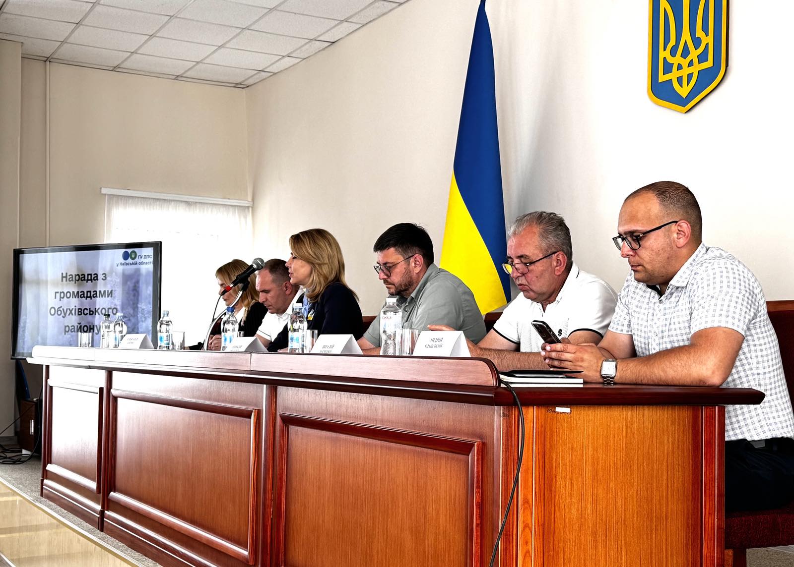В рамках посилення принципів прозорості та підзвітності у взаємодії між органами місцевого самоврядування, контролюючими структурами та громадами, в Обухівській районній державній адміністрації відбулася робоча зустріч з представниками Київської обласної державної адміністрації, головами територіальних громад Обухівського району, керівництвом Головного управління ДПС у Київській області, Київської обласної військової адміністрації, Головного управління Держгеокадастру та Північного офісу Держаудитслужби, присвячена питанням бюджетних надходжень, фінансового контролю та ефективного управління землями громад.