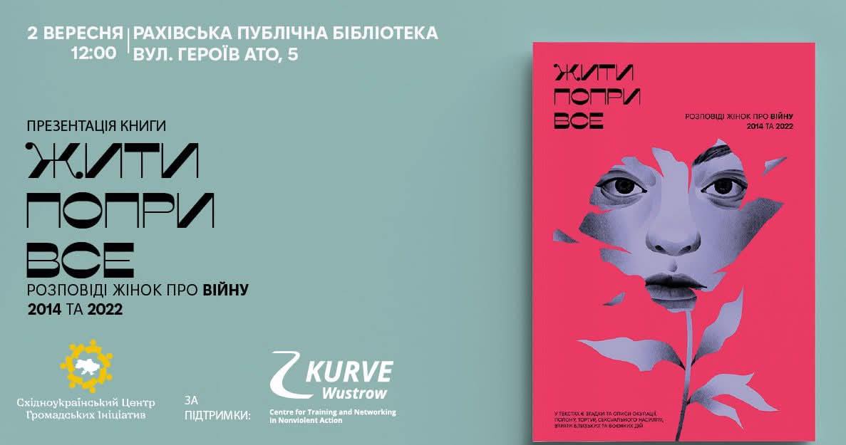 У місті Рахів відбудеться важлива подія – презентація книги «Жити попри все: розповіді жінок про війну, 2014 та 2022». Ця книга є свідченням незламності українських жінок, які пережили травматичний досвід війни та активно шукають опору для подальшого життя. Подія запланована на 2 вересня о 12:00 год у читальному залі Рахівської публічної бібліотеки, розташованої за адресою: м. Рахів, вул. Героїв Ато, 5. Вхід на презентацію – вільний.