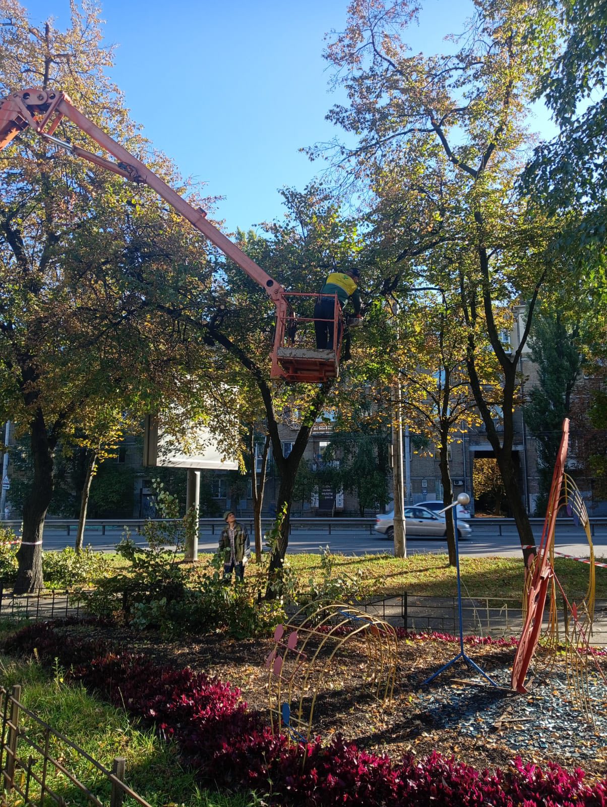 🌳 У сквері за адресою Чоколівський бульвар, 25, тривають роботи з санітарної обрізки дерев. Цю важливу діяльність проводить КП «Керуюча компанія з обслуговування житлового фонду Солом’янського району».