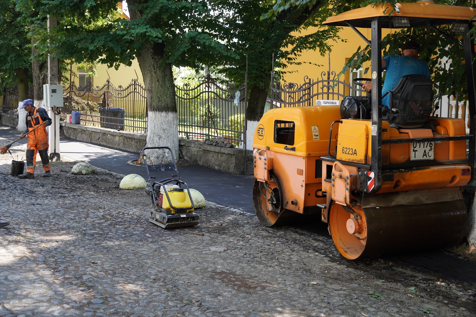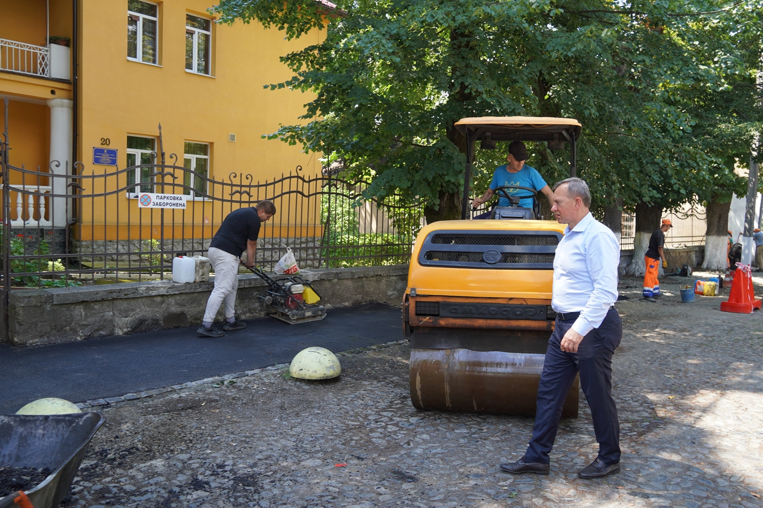 Напередодні виконували підготовчі роботи, зокрема, знімали старе пошкоджене асфальтне покриття, а сьогодні працівники підрядної організації вже приступили до асфальтування тротуару. Хід виконання проінспектував міський голова Богдан Андріїв.