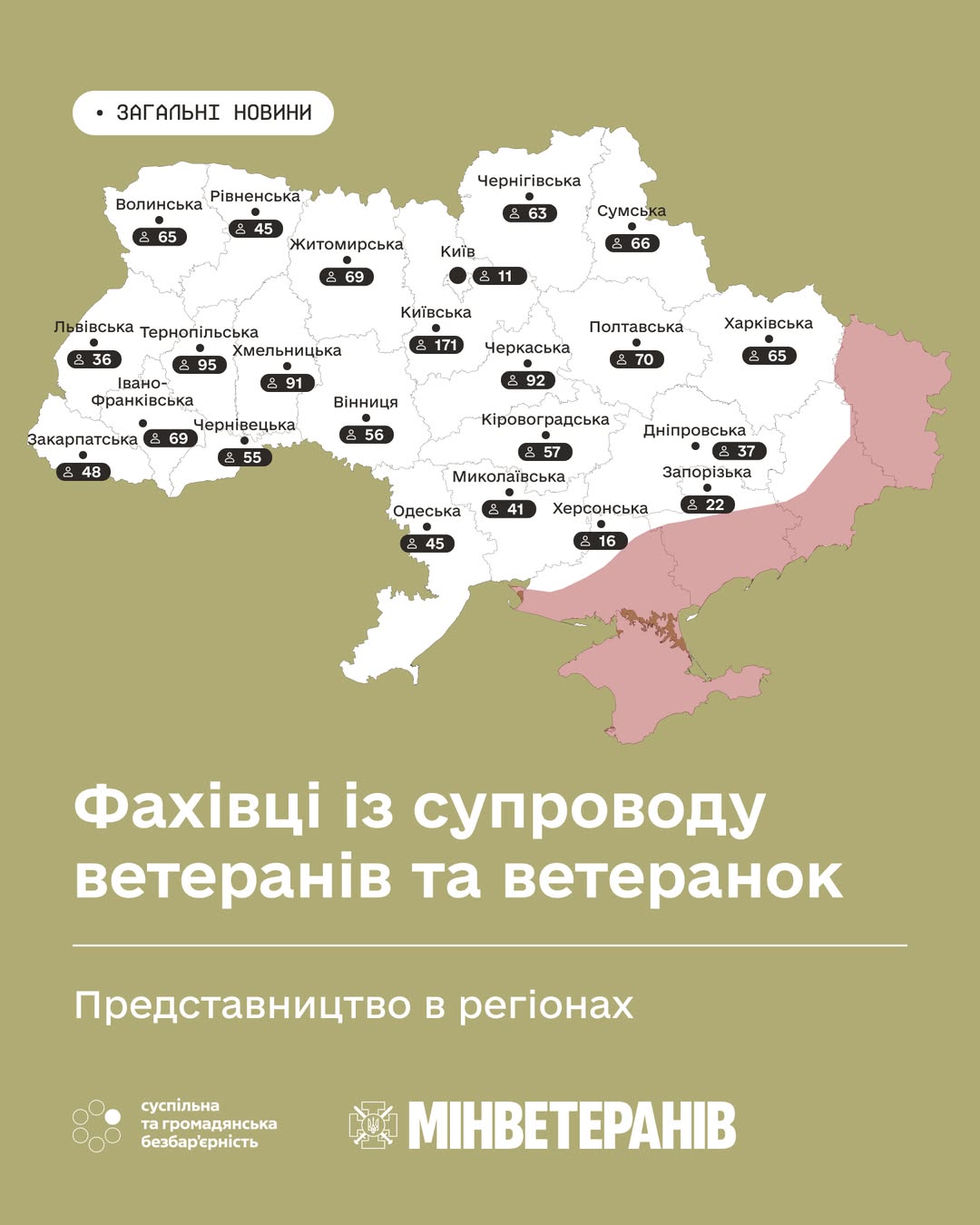 🔷Розподіл працюючих фахівців із супроводу ветеранів по регіонах — дивіться на карті 👇🏻