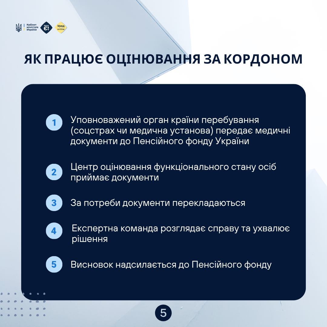 Детальна інформація про те, хто саме може пройти оцінювання за кордоном, представлена в інфографіці нижче. Система оцінювання функціонування є важливим інструментом для забезпечення соціального захисту українців, незалежно від їхнього місця перебування.