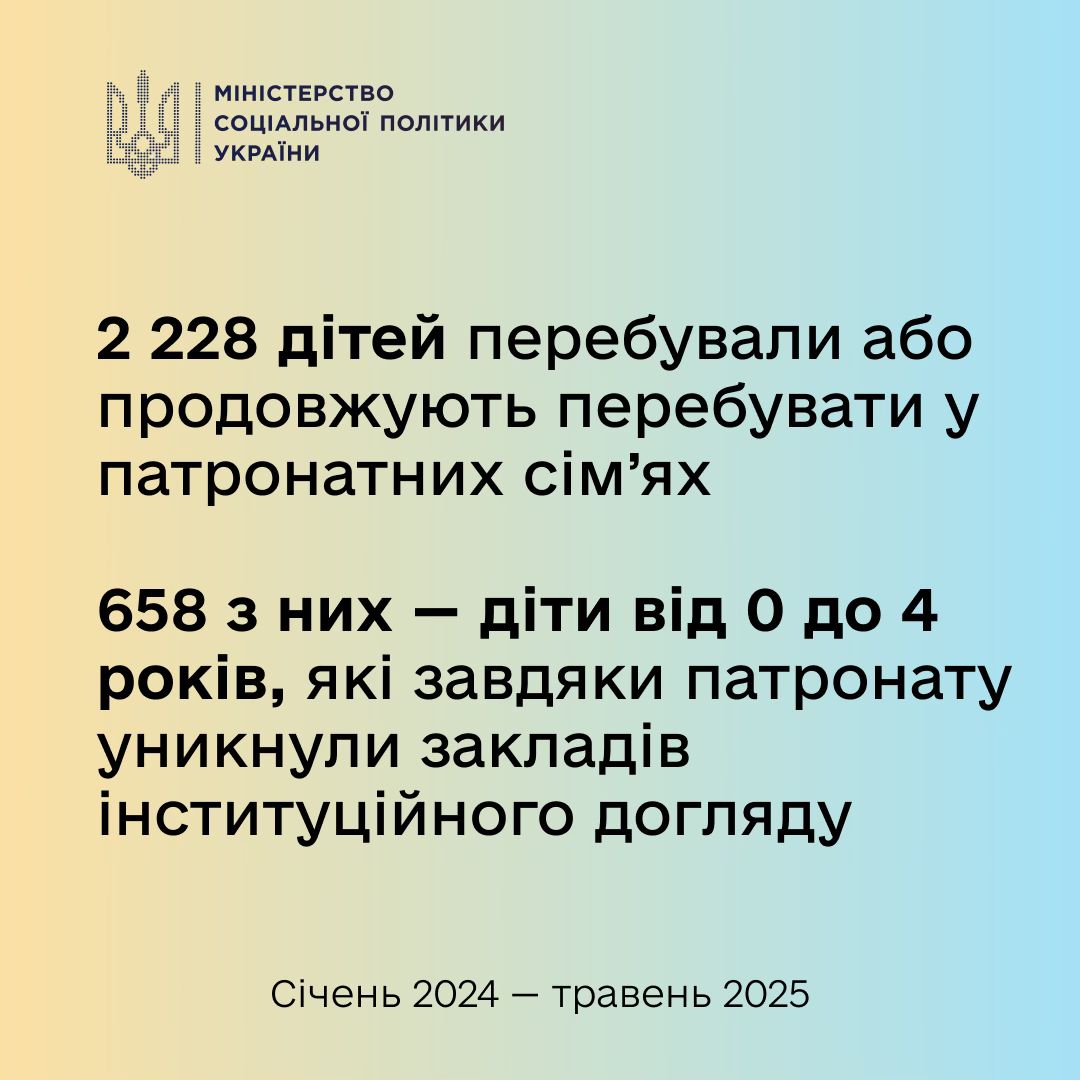 Завдяки патронатним сім’ям, понад 650 дітей змогли уникнути дитячих будинків. Це свідчить про ефективність та важливість розвитку патронату над дитиною в Україні. Метою є забезпечення кожній дитині права на виховання в сімейному оточенні.