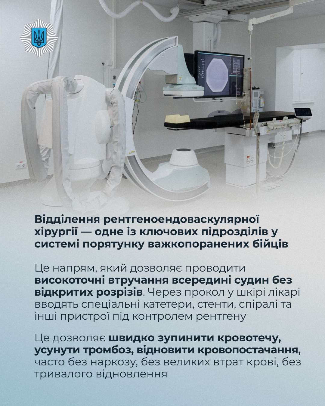 🏥В умовах повномасштабної війни відділення рентгеноендоваскулярної хірургії одного з госпіталів системи МВС відіграє ключову роль у порятунку поранених бійців. Цей сучасний напрямок медицини дає змогу виконувати високоточні втручання всередині судин без відкритих розрізів, що має вирішальне значення для збереження кінцівок і життя військовослужбовців.