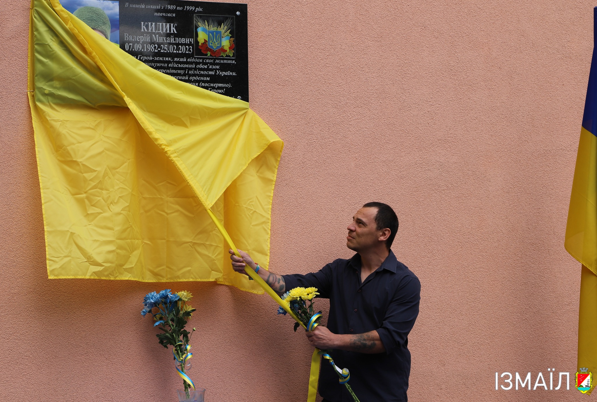 В Ізмаїлі вшанували пам’ять Героя! В Ізмаїльській гімназії №9 відкрито меморіальну дошку на честь полеглого захисника України, солдата Валерія Кидика. Валерій Михайлович, стрілець-снайпер, віддав своє життя, захищаючи Україну від російської агресії. Відкриття меморіальної дошки стало важливим моментом вшанування його подвигу.