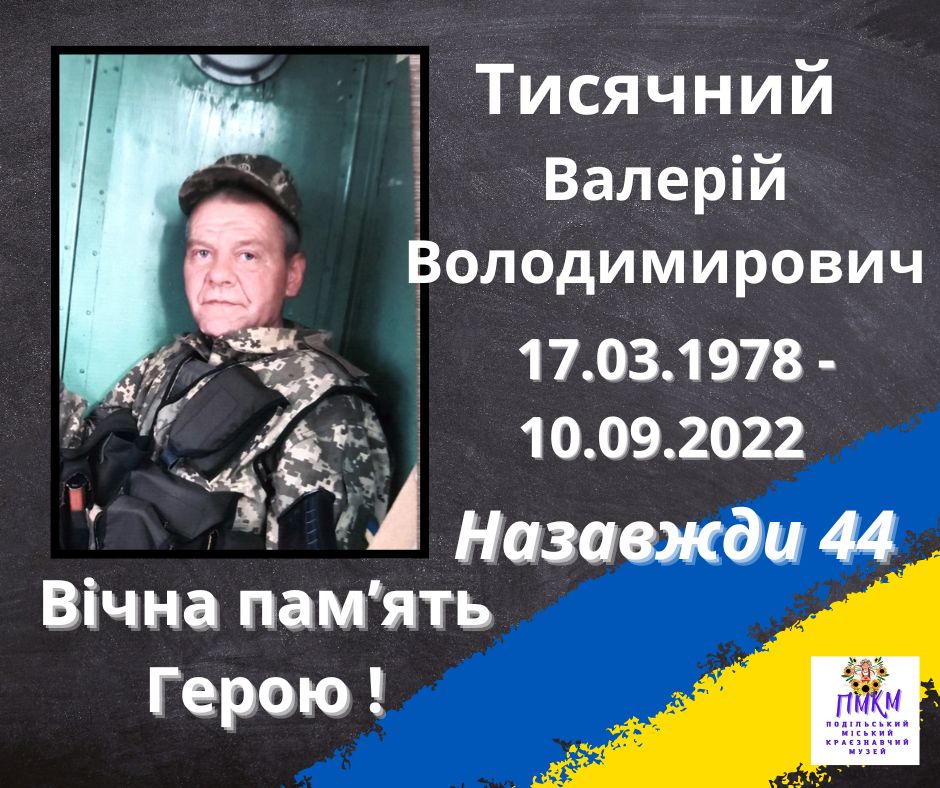 Ми пам’ятаємо Валерія Тисячного як мужнього воїна, відданого сина своєї землі, який до останнього подиху боровся за свободу та територіальну цілісність України. Його самопожертва є прикладом для всіх нас. Вічна пам’ять і слава Герою! 🕯🇺🇦