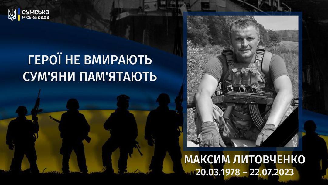 За видатну мужність та відданість Україні, рішенням Сумської міської ради Максиму Литовченку було посмертно присвоєно звання «Почесний громадянин міста Суми».