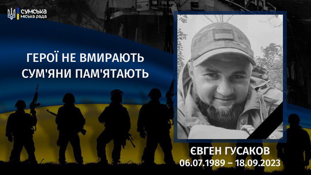 Церемонія прощання із Захисником відбулася 29 вересня 2023 року. Поховали Євгена Гусакова на Алеї Слави Баранівського кладовища міста Суми, вшановуючи його пам’ять.