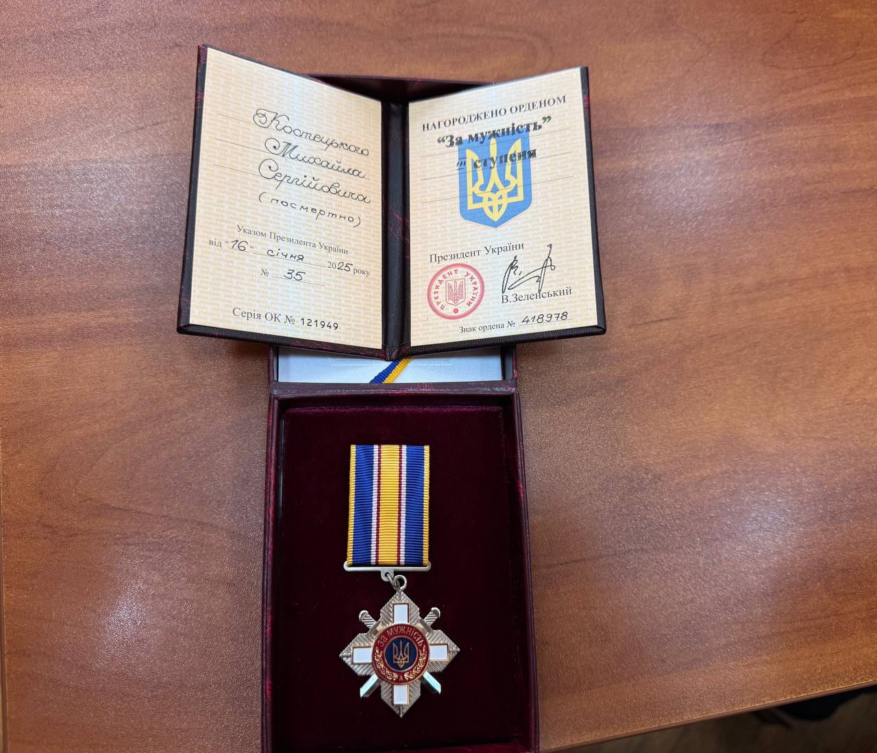 Михайлу Костецькому вручено орден «За мужність» (посмертно)